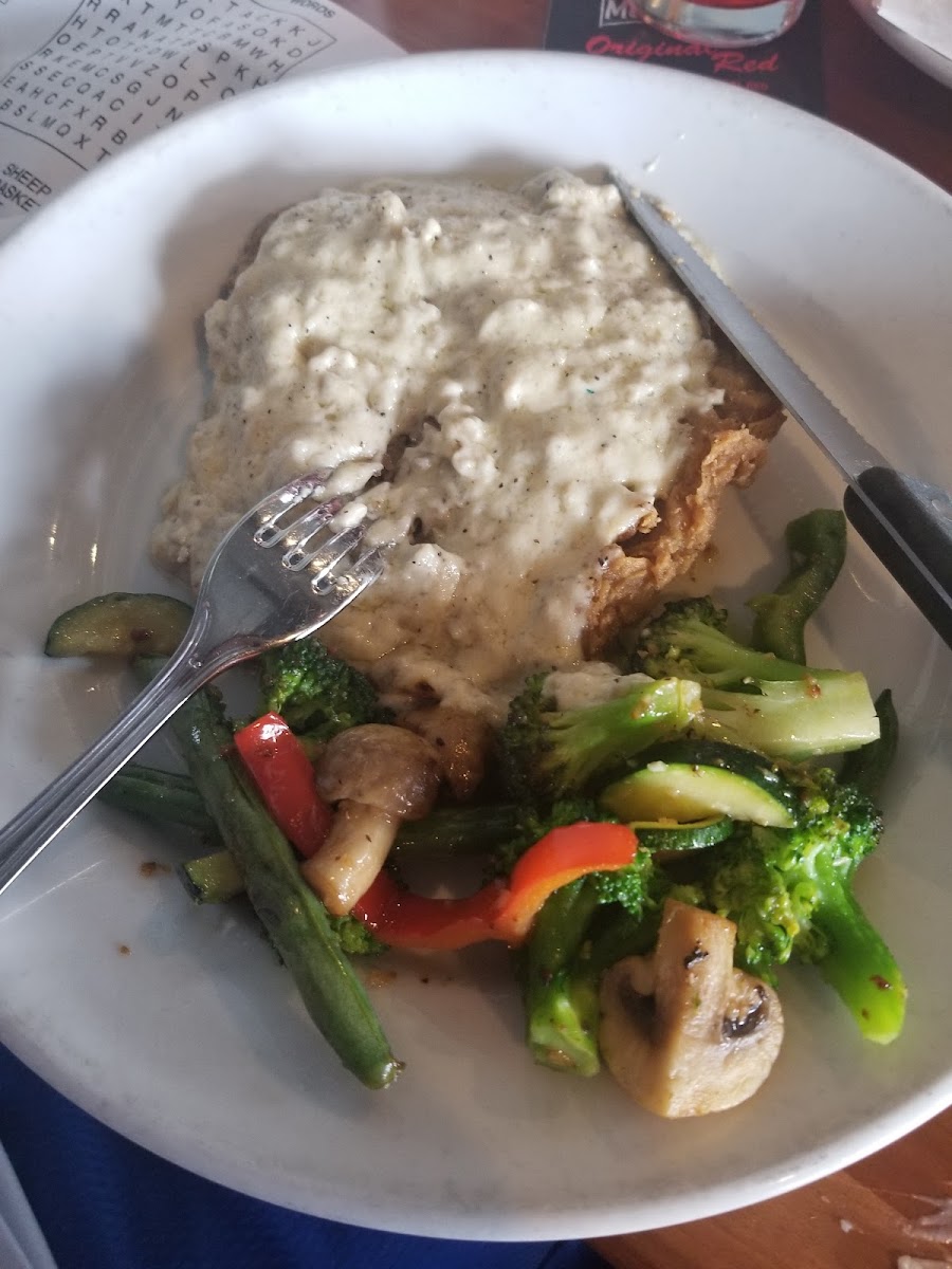 Nice place to drop in to, for a burger & a brew. We had a late dinner, arriving at 8pm Sunday, & they closed at 9pm. Despite our server being near the end of her shift, she was friendly, & we got good service here. My wife & I enjoyed our dinners. The cook nailed my Black & Blue Burger, & best of all, there were tons of Blue Cheese crumbles on top of a pretty darn thick & tasty burger patty. This restaurant is directly behind the 18th hole of Capitol City Golf Club.