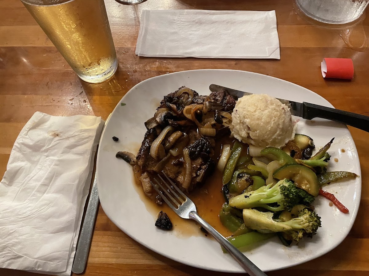 First timer here, my husband and I really enjoyed our food. My photos don't do the food justice. I ordered the steak sandwich and hubby had a burger. Our server was very funny, friendly, and attentive. We will definitely be going back to try their prime rib and the rest of their menu. The atmosphere was very nice, we asked for booth after being seated at a small table and they accommodated us. I wanted to be closer to a window seat for good ambiance. I can't wait until the weather gets warmer to check out their outdoor seating. I highly recommend them and will definitely be going back!